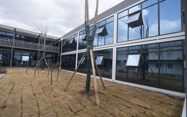 Design Philosophy: The entire project headquarters is tailored to the local conditions, fully integrating with the mountainous geographical environment of the area. We minimize earthwork to preserve the original landscape. We aimed to create a park-like office environment, breaking away from traditional layouts. The design adopts a courtyard-style configuration with a garden at the center and offices arranged around the perimeter. Sunlight panels are used in the open-air corridors, allowing natural light to flood the offices and offering views of the garden, fostering a sense of belonging among employees.